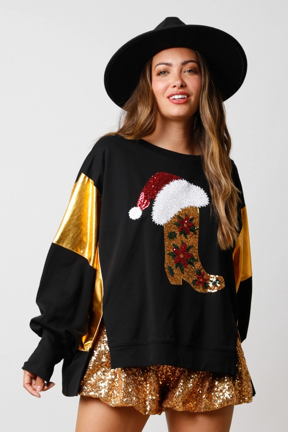 Autumn And Winter New European And American Christmas Sequins Long Sleeve Pullover Hoodie Women