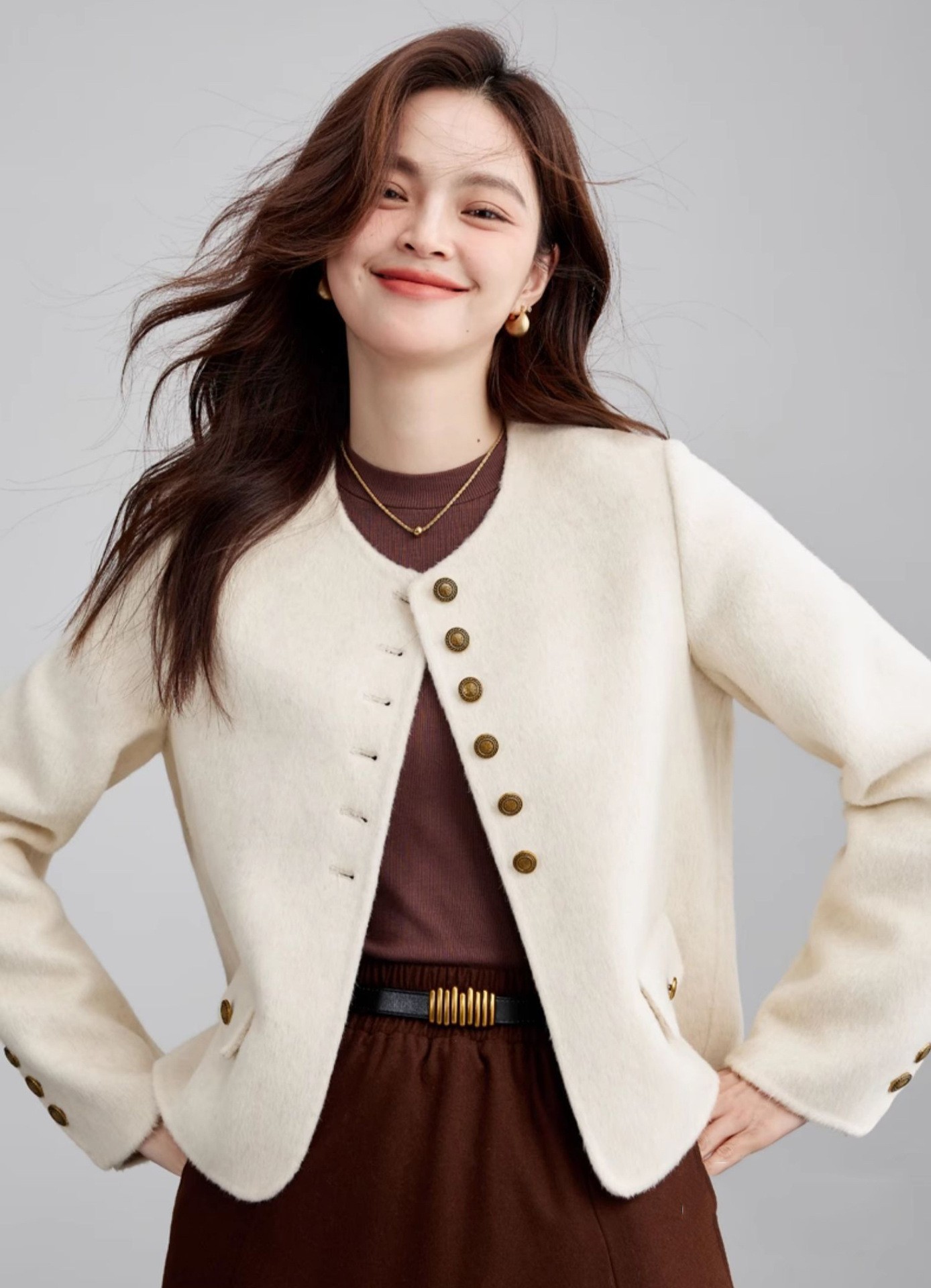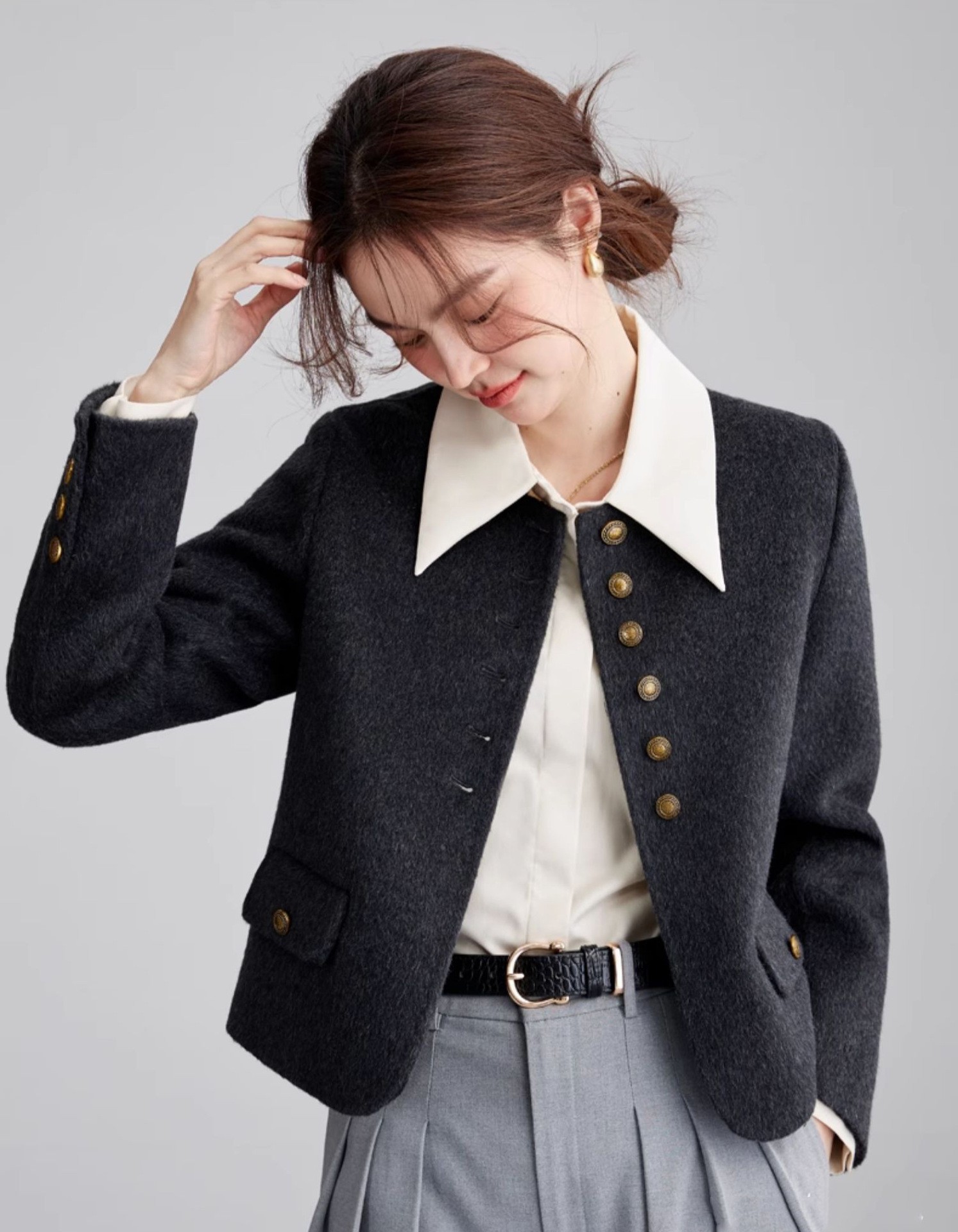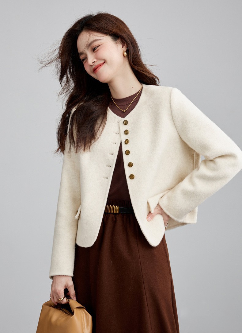 High Sense Short Temperamental Crew Neck Coat Women